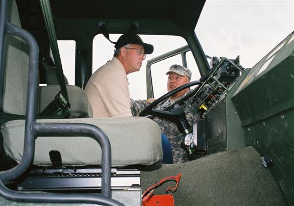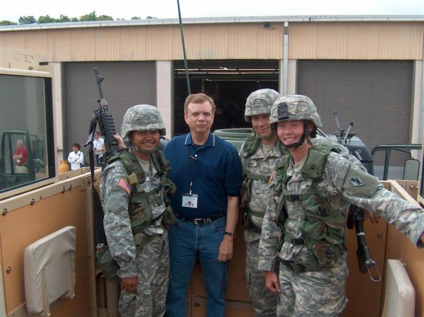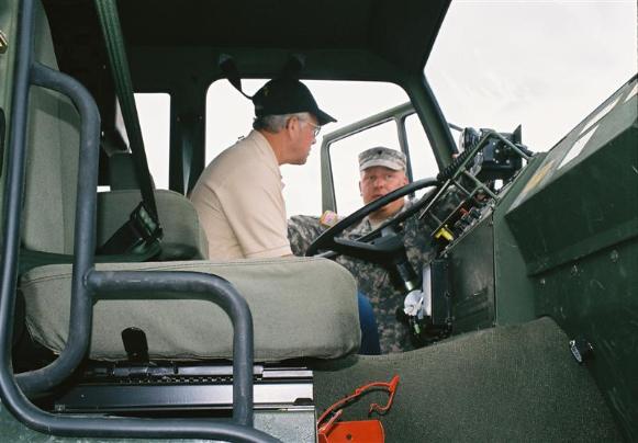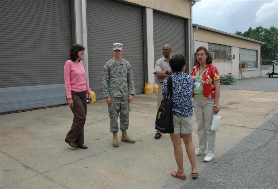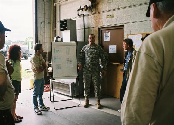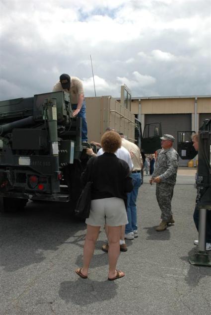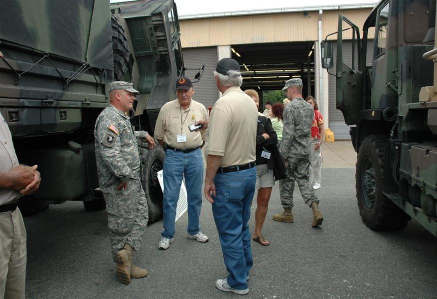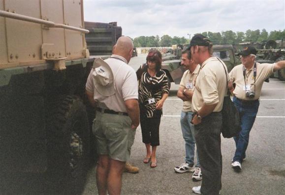 The lady in the pink shirt is Vicki Bowker from the Fort Eustis PAO. She was responsible for setting up the Fort Eustis tour. Thank you Vicki for a great job. We all loved our tour and will remember it for years to come.