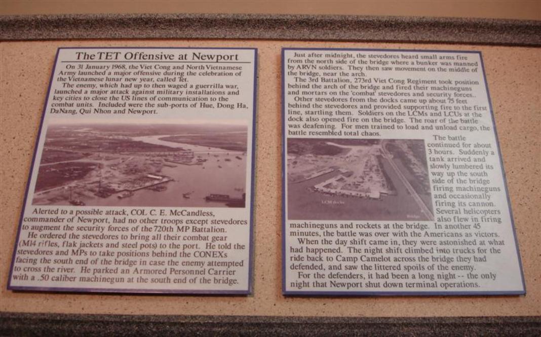 Newport Terminal - TET 1968 - Since these plaques were made, there has been more updated info added to the TET battle at Newport from members of the 71st Transportation Battalion who fought in the battle.