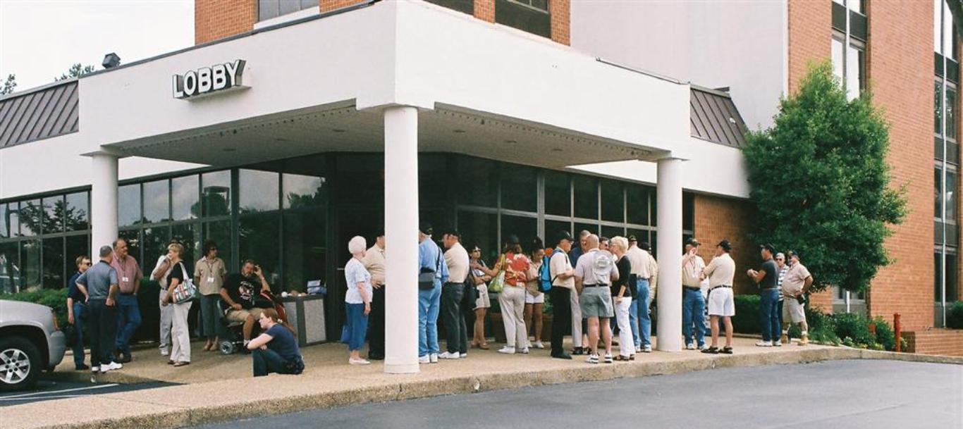 Waiting For The Bus Outside the Fort Eustis Club To Take Us To Our Next Destination - Seems as though the bus driver took a little side tour of his own.