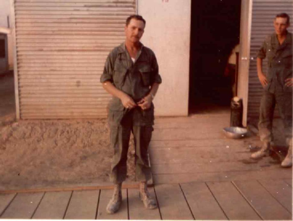 | Jim Carter & Sgt John Fay - Taken in front of barracks at Camp Camelot. |