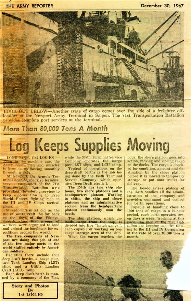 | Below are some articles from the December 30th, 1967 issue of The Army Reporter pertaining to the 71st Transportation Battalion's operation of Newport Terminal. |