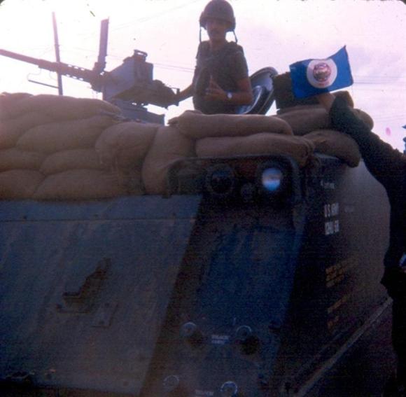 I think this guy's name was Burton. Barry Goins On APC With 30 Cal - Leaving Newport